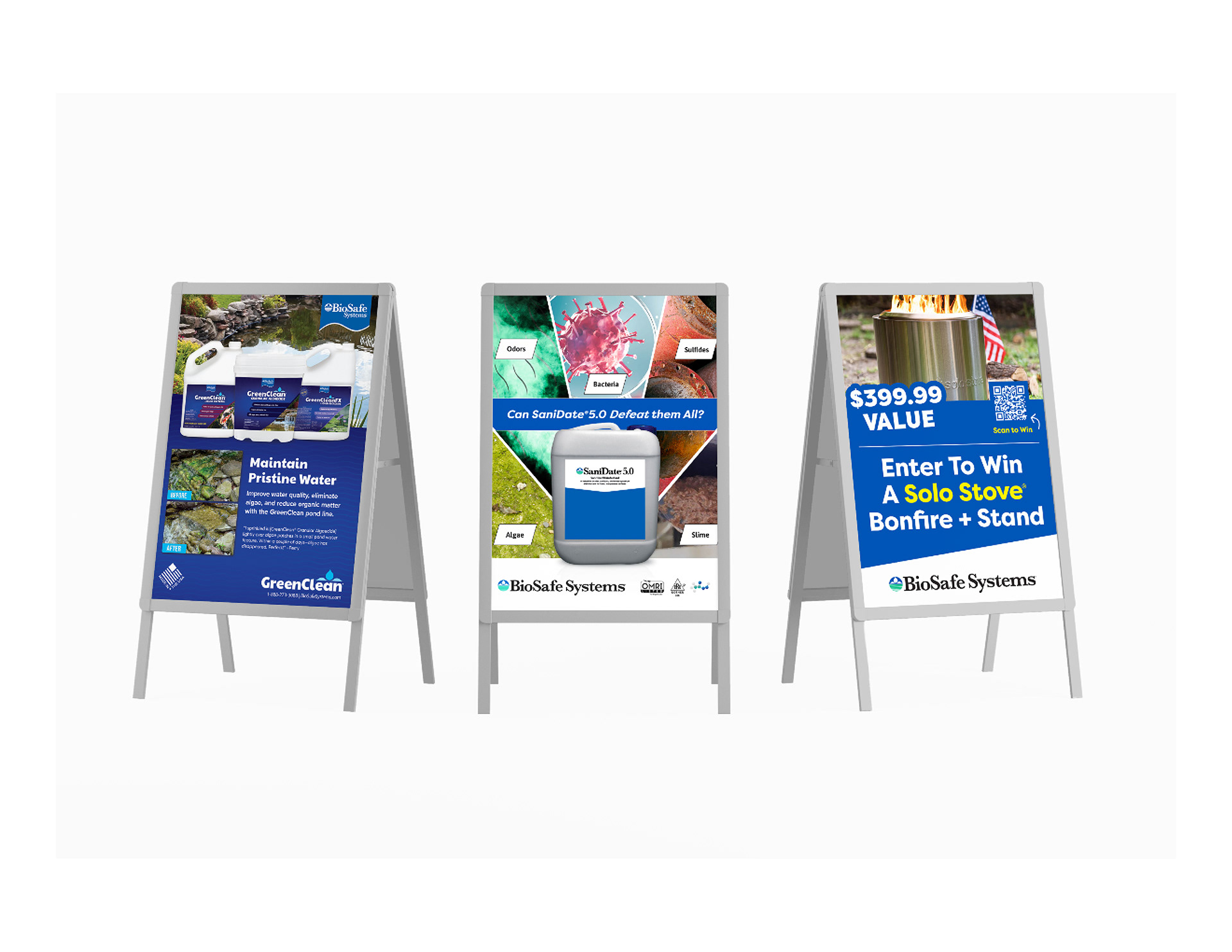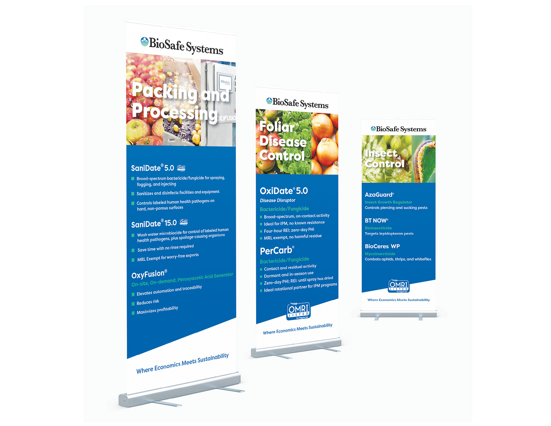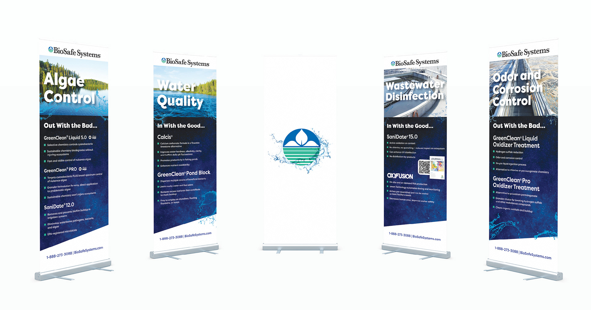 I had the great pleasure of designing a series of print advertisements in various sizes as part of our 2021 brand launch at the agency level for BioSafe Systems. These ads marked the beginning of a year-long rollout that included direct mail pieces, trade show materials, and the creation of cohesive visual assets to reinforce our refreshed branding across multiple platforms. I also had the honor of designing BioSafe Systems’ 20th Anniversary logo, where I saw the perfect opportunity to incorporate the company’s iconic “BioSafe Bug” by fusing it with the number 2—creating a unified symbol that represents the strength and synergy of the BioSafe Systems brand. Additionally, I had the opportunity to design the logo for OxyFusion, an all-in-one cabinet for PAA, which was an exciting and rewarding challenge to visually represent such an innovative product. To maintain brand consistency, we formatted our pull-up banners with the same visual style as our advertisements, ensuring that viewers who had seen the ads in industry publications could instantly recognize the brand at trade shows and events.